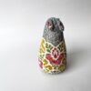 奄美のクロウサギをモチーフにされた木版手染めぬいぐるみ。奄美の花・ハイビスカス・シャリンバイの実を紋様にデザインされています。