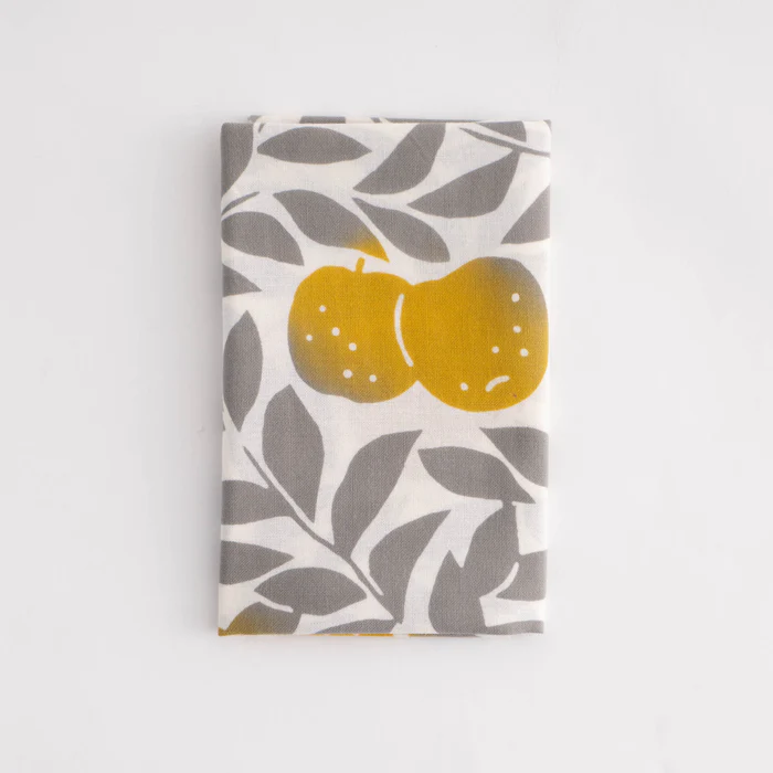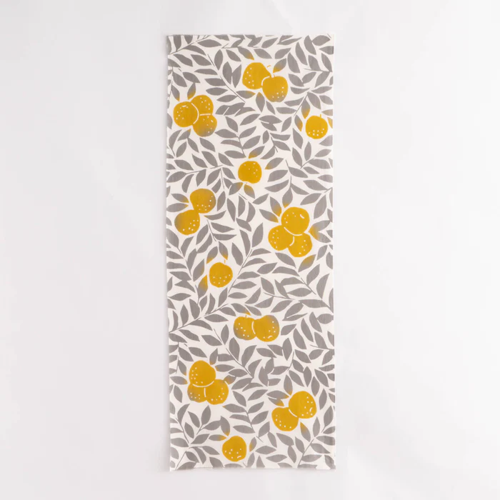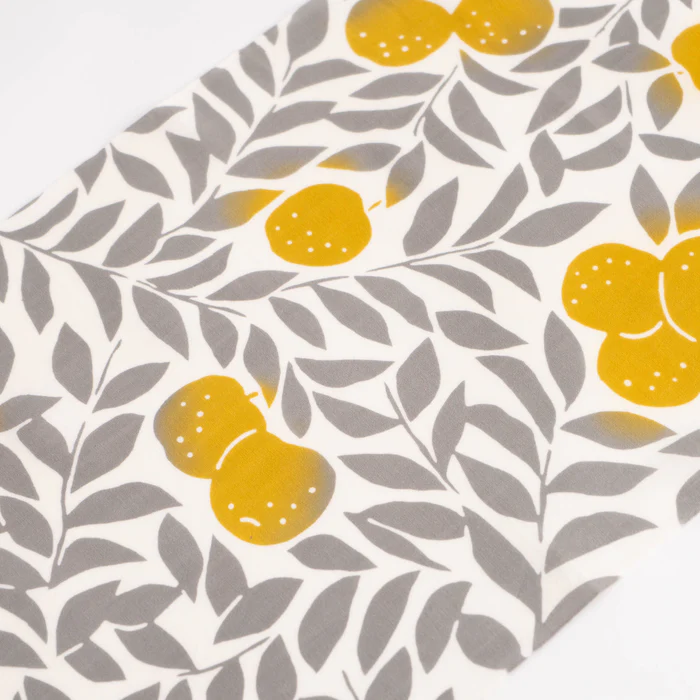 食卓に敷いたり、インテリアとして飾ったりしておしゃれに楽しめます。梨の実を引き立てる葉の文様が美しく、縦横の方向を問わずお使いいただけるため活用の幅が広がります。