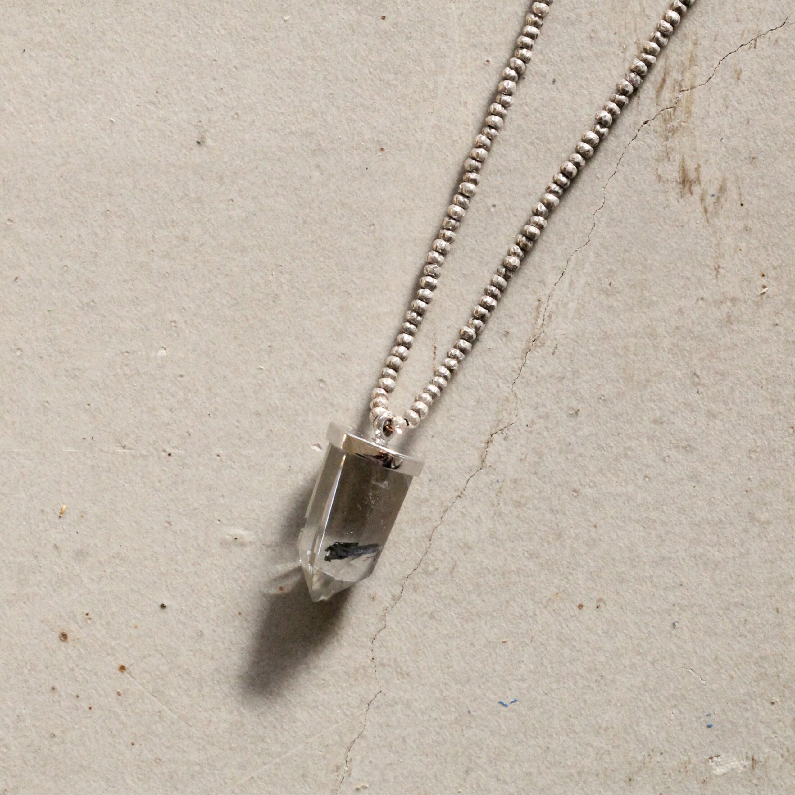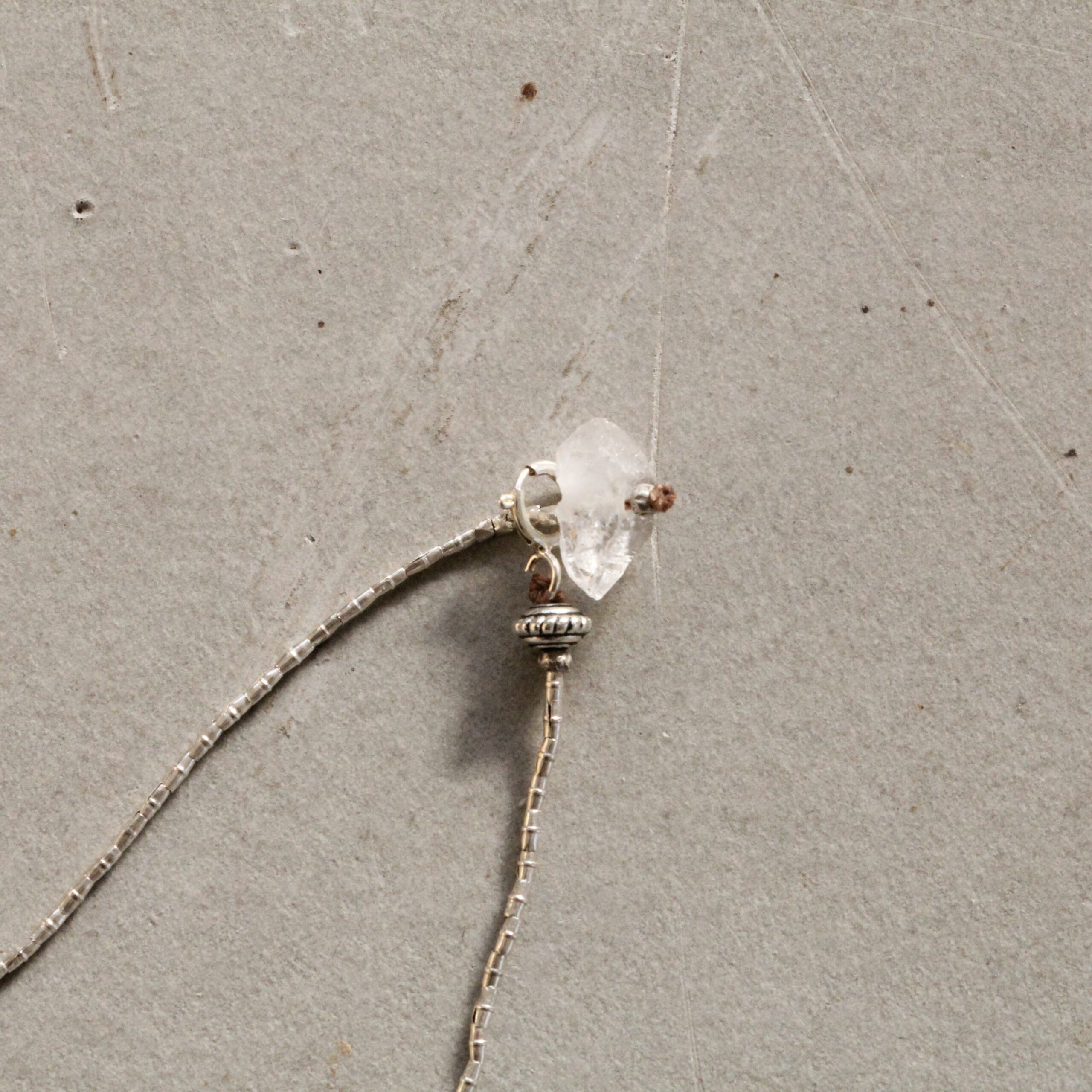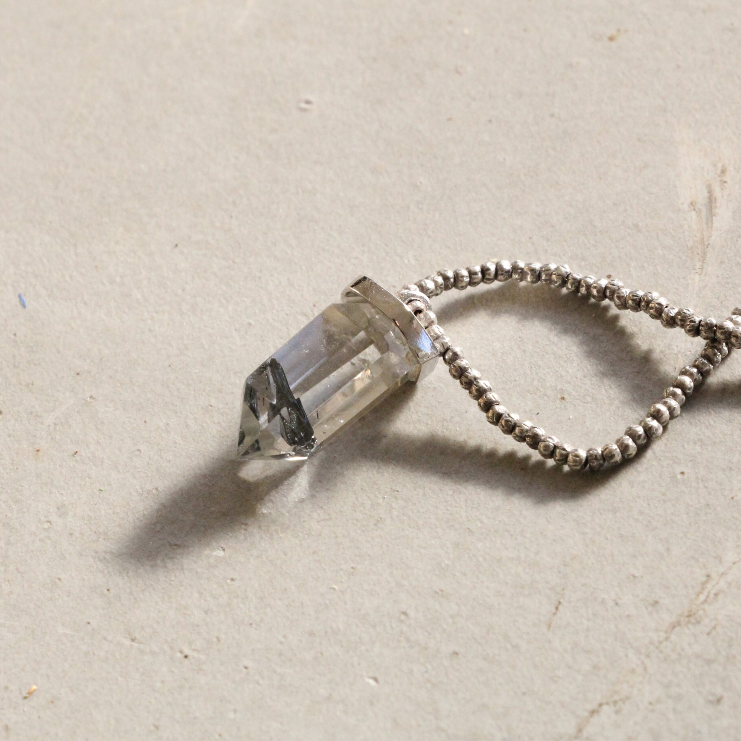 まるで御守りのような佇まいのネックレスです。